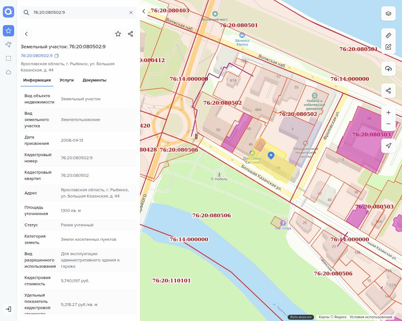 Имущество, находящееся в собственности Ярославской области, расположенное по адресу: Ярославская область, г. Рыбинск, ул. Большая Казанская, д. 44, с земельным участком, в составе: Здание, кадастровый номер 76:20:080502:19, назначение: нежилое, количество этажей 5, в том числе подземных 1, площадь 1436,8 кв. м, местоположение: Ярославская область, г. Рыбинск, ул. Большая Казанская, д. 44; Здание гаража, кадастровый номер 76:20:080502:18, назначение: нежилое, количество этажей 1, в том числе подземных 0, площадь 77,6 кв. м, местоположение: Ярославская область, г. Рыбинск, ул. Большая Казанская, д. 44; Земельный участок, кадастровый номер 76:20:080502:9, площадь 1100 кв. м, категория земель: земли населенных пунктов, вид разрешенного использования: для эксплуатации административного здания и гаража, местоположение: Ярославская область, г. Рыбинск, ул. Большая Казанская, д. 44
