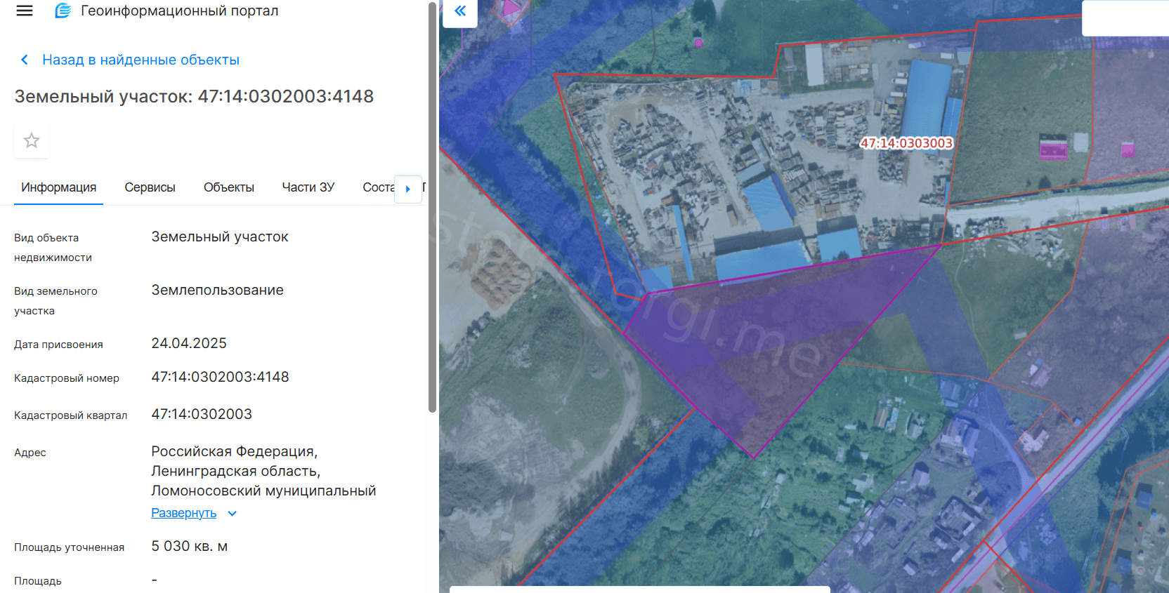 Земельный участок с кадастровым номером 47:14:0302003:4148