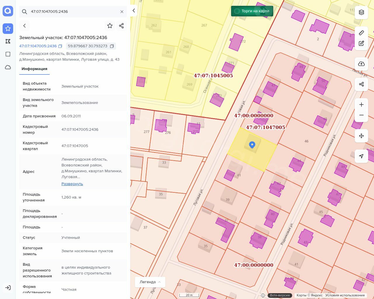Лот №1. Земельный участок, общей площадью 1260+-12 кв. м., с кадастровым (условным) номером 47:07:1047005:2436 и находящийся на нем объект незавершенного строительства (жилой дом) общей площадью 119,65 кв.м.
