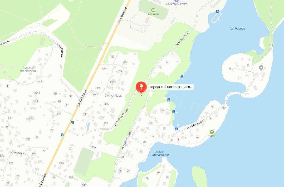 Земельный участок, государственная собственность на который не разграничена, расположенный по адресу: Ленинградская область, Всеволожский муниципальный район, Токсовское городское поселение, городской поселок Токсово, улица Чайное Озеро, земельный участок 33А, кадастровый номер 47:07:0502048:460, площадью 11 031 кв. м. Вид разрешенного использования - «туристическое обслуживание».