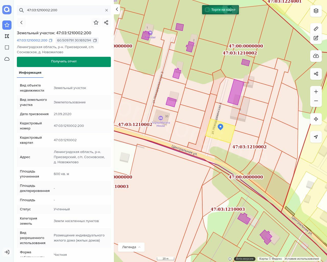 Лот №1. 1. Земельный участок, площадью 600 кв.м., кадастровый номер 47:03:1210002:199 и строящийся жилой дом расположенный на земельном участке, проектной площадью 62,2 кв.м., жилой площадью 45,2; Адрес: Ленинградская область, р-н Приозерский, с/п. Сосновское, д. Новожилово