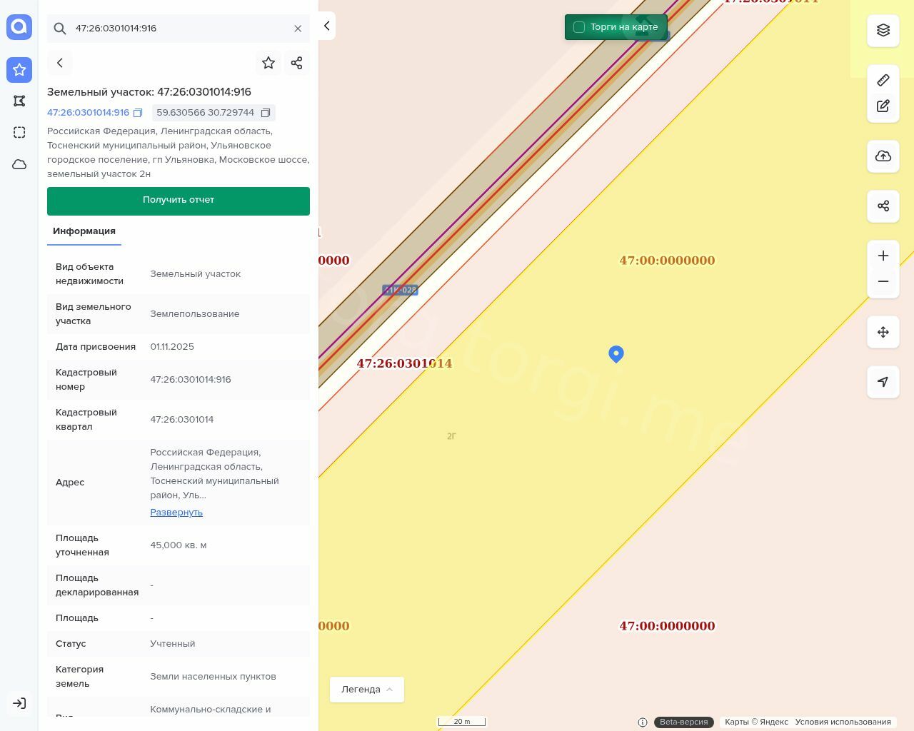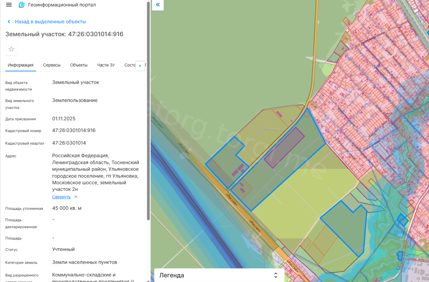 Вид разрешённого использования земельного участка: Производственная деятельность Кадастровый номер земельного участка: 47:26:0301014:916 Площадь земельного участка: 45000 м^2