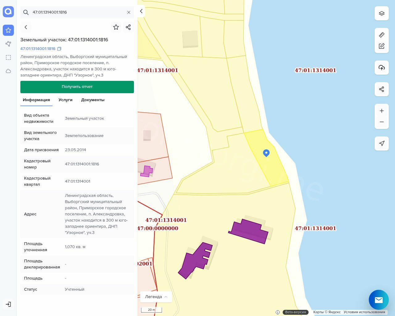 Земли сельскохозяйственного назначения для ведения дачного хозяйства: Земельный участок, площадь 1070 кв. м, кад. №47:01:1314001:1816, Земельный участок, площадь 2828 кв. м, кад.№47:01:1314001:1817.