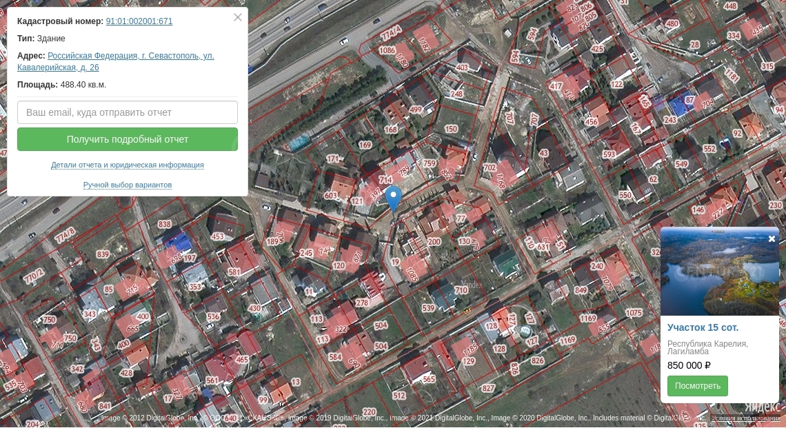 Здание жилое (Жилой дом) площадью 488.4 кв.м. кадастровый номер 91:01:002001:671. Земельный участок кадастровый номер 91:01:002001:120 , площадью 628+/-1 кв.м.