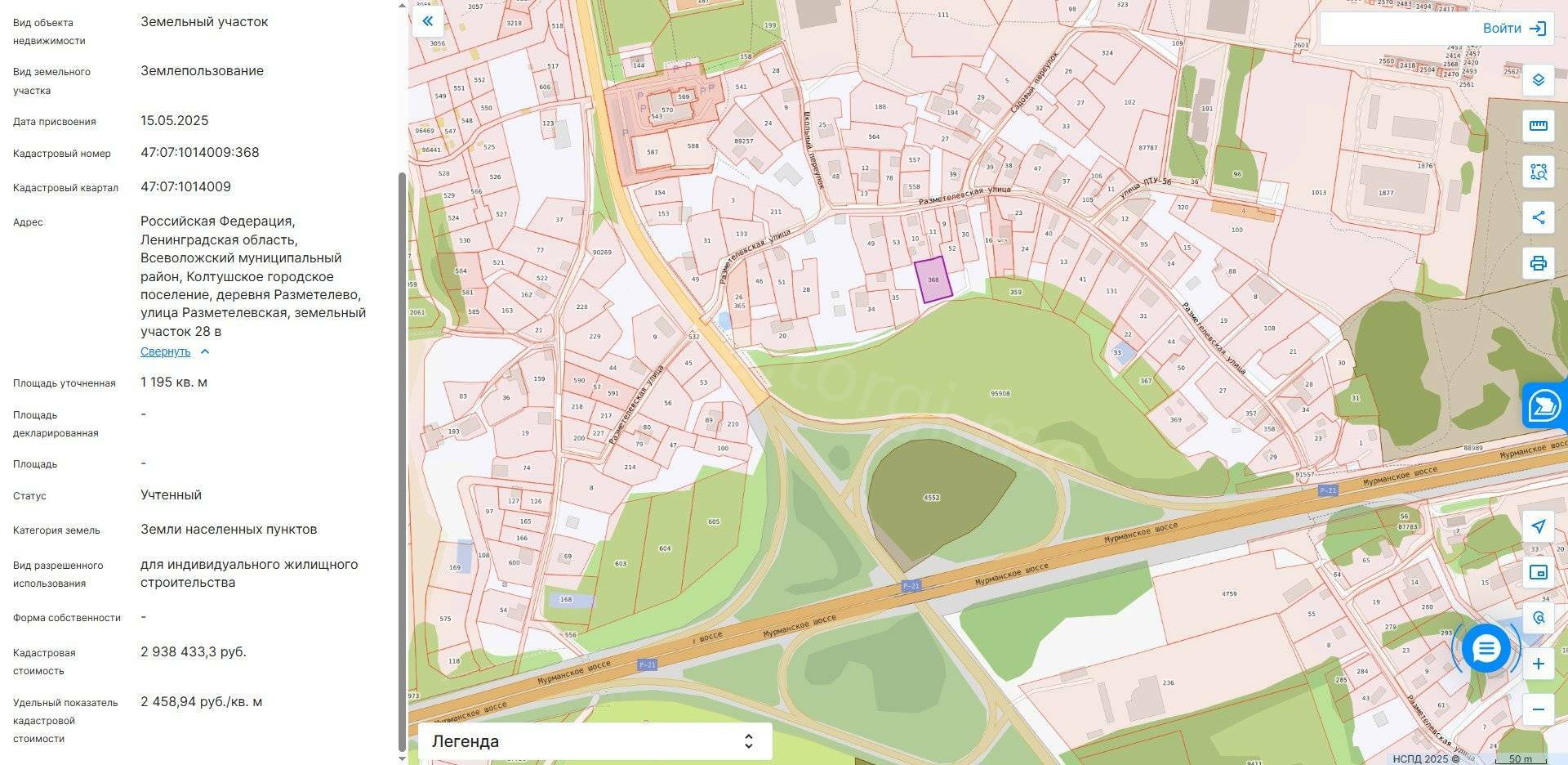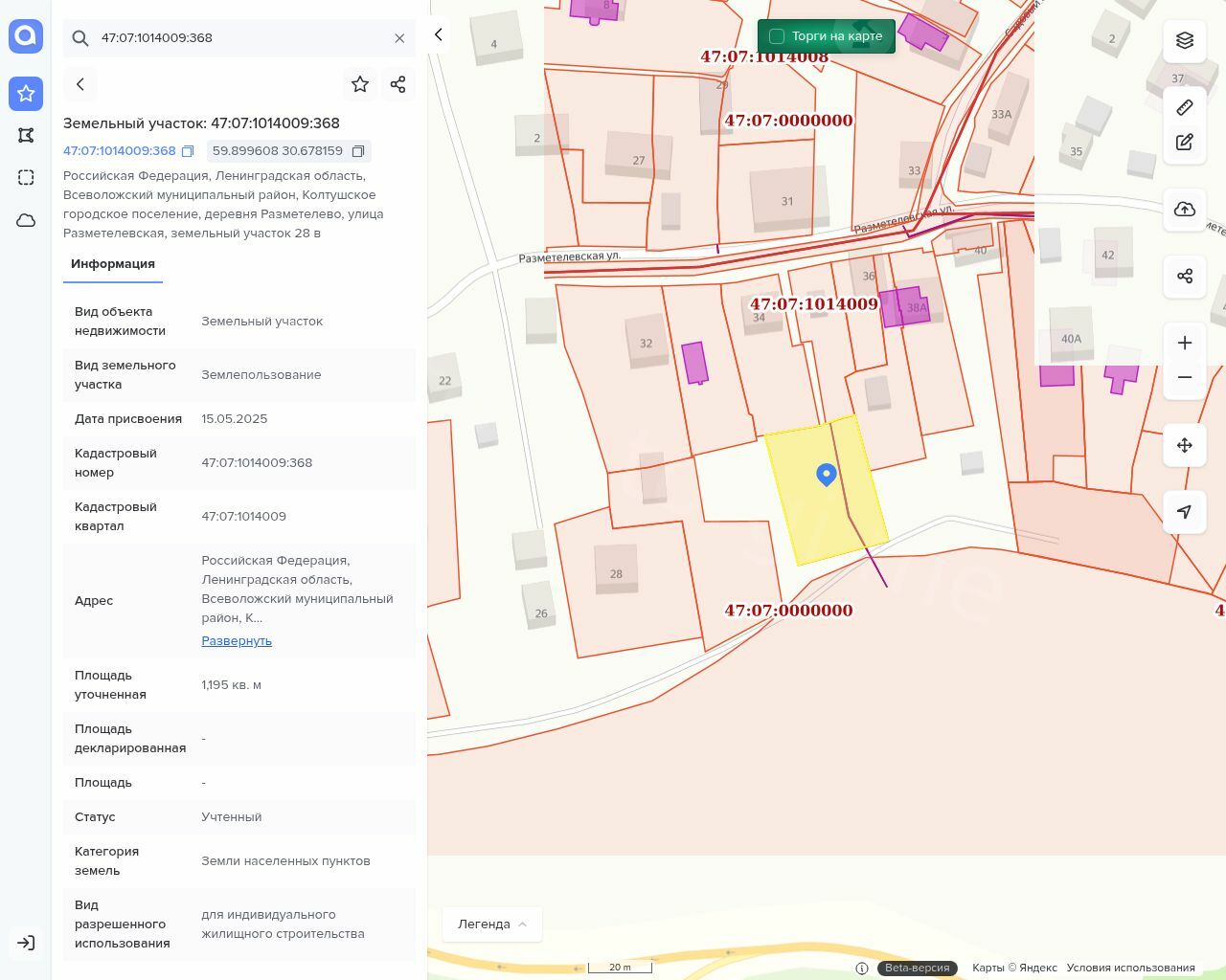 Аренда земельного участка, кадастровый номер 47:07:1014009:368, площадь – 1 195 кв. м., категория земель: земли населенных пунктов, вид разрешенного использования: для индивидуального жилищного строительства, расположенный по адресу: Российская Федерация, Ленинградская область, Всеволожский муниципальный район, Колтушское городское поселение, деревня Разметелево, улица Разметелевская, земельный участок 28В